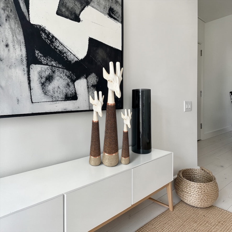 We have a real passion for bringing organic modernism into your home. We love what we do and our mission is to supply design pieces inspired by earthy natural textures and African culture to contemporary spaces. We hope you love our decor as much as we do!