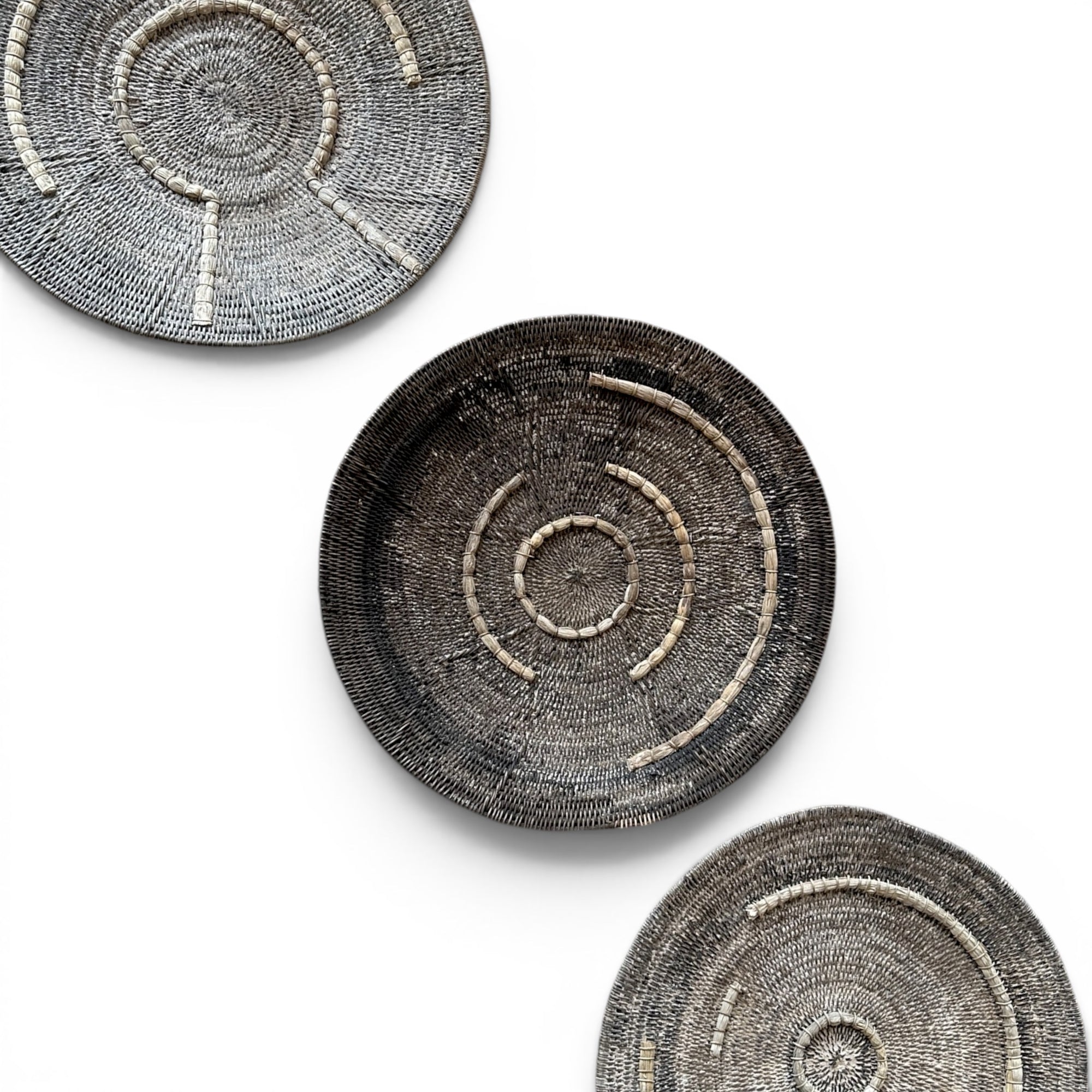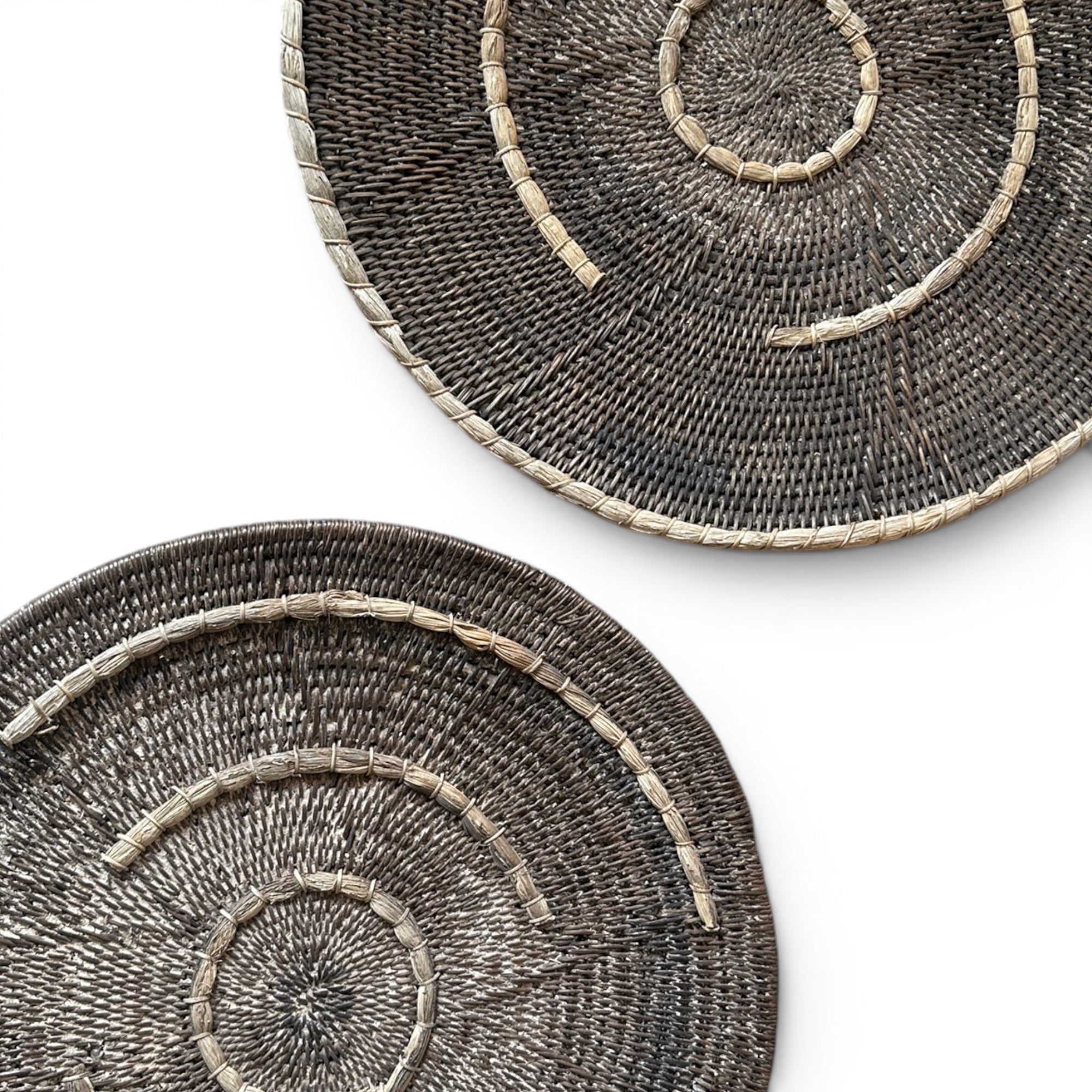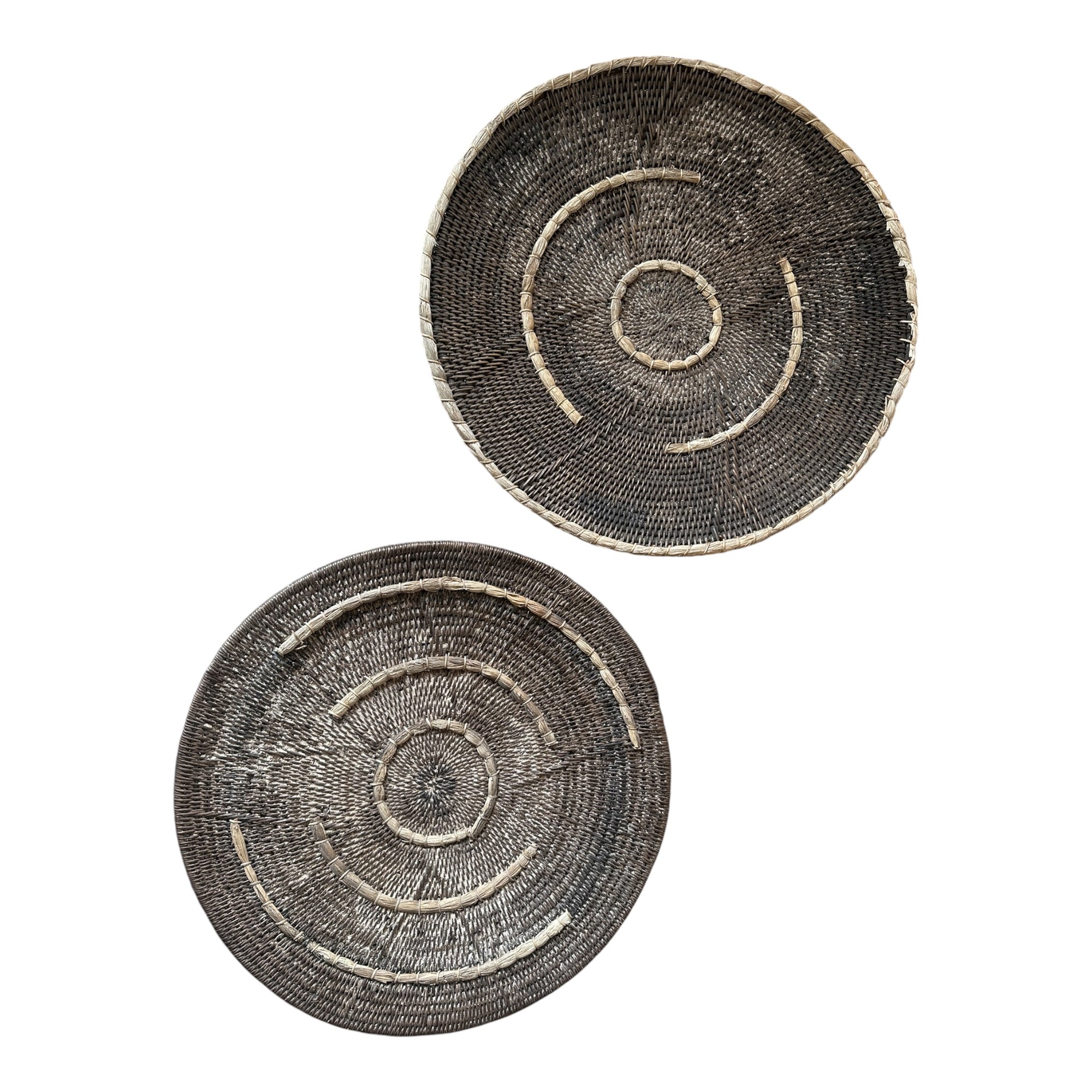 Bring the rich heritage of Zambia into your home with our Vintage Makenge baskets—rare, functional works of art that double as stunning wall décor. Traditionally handcrafted by the skilled Mbundu and Losi women of Zambia's remote Western Province, these extraordinary baskets have been used for generations in daily life for storage, winnowing, and holding water.